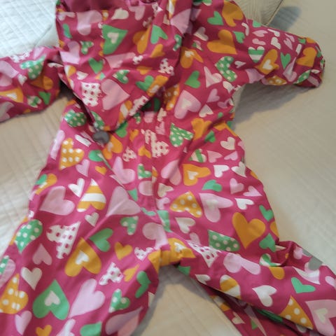 Välikausihaalari. Voi käyttää myös haalarin alla välivaatteena. Hyvä autoillessa. Pehmeä vähän kun verkkarit ohuella toppauksella.