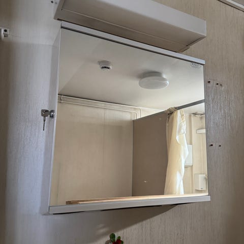 Siisti metallinen lääkekaappi.