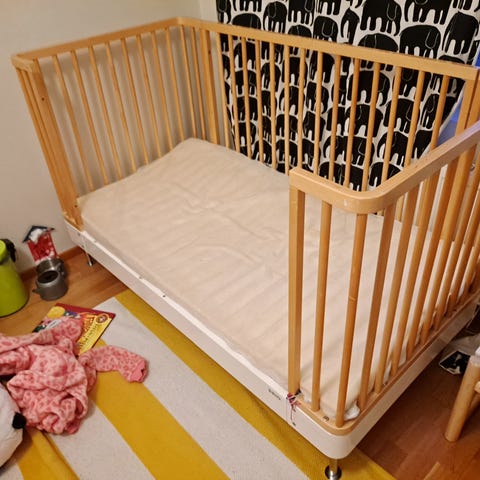 Sänkyn kuva Ikean sivuilta, koska sänky on nyt osina (kuvat ohessa) ja kuvissa näkyy muutamat käytön jäljet. Muuten siisti ja ehjä.