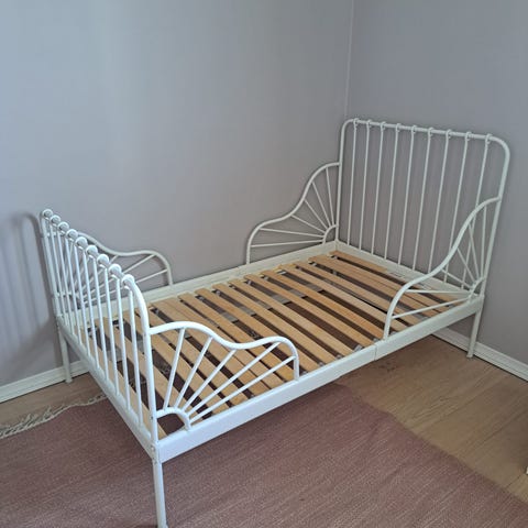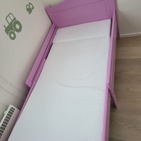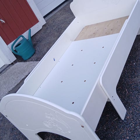 Annetaan hieno vanha lastensänky, josta saa pienellä korjauksella hyvän vuosiksi eteenpäin. Ensimmäinen kuva siitä, miltä näyttää kokonaisena, muut kolme siitä, millaisena lähtee hakijalle. Kaikki osat tallella ja korjaus vaatii nähdäkseni pari lautaa ja joitakin ruuveja. Leveys noin 77 cm ja pituus säädettävissä noin 120-220 cm. Hyvää laatua.