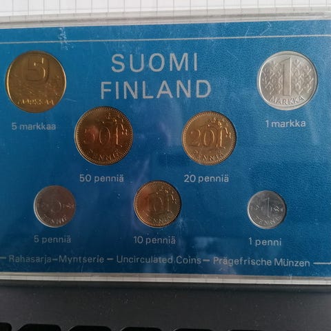 Sarjassa on rahat 5mk, 1mk, 50p, 20p, 10p, 5p ja 1p.