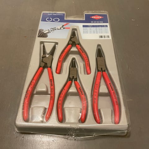 Knipex 280 nakertaja ja Malko C5R supistaja, molemminkätiset peltisakset, niittipihdit ja niittejä mukaan.