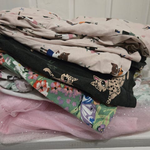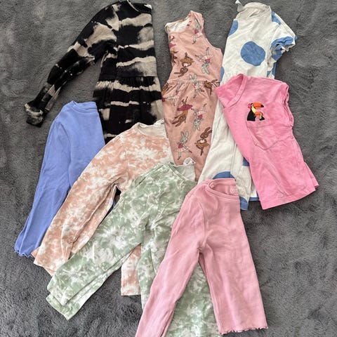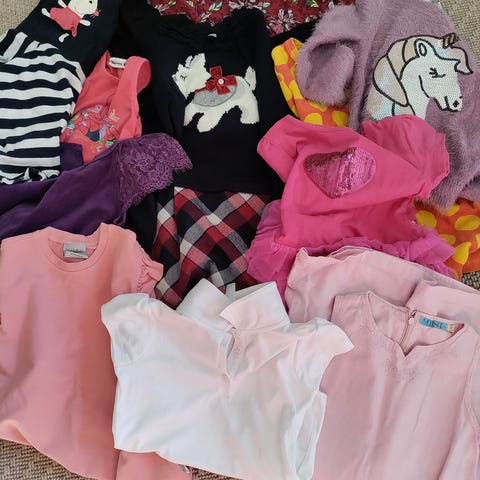 Hyväkuntoinen setti puseroita ja mekkoja. Merkkeinä pop, benettom, lindex, blaa yms. Pieniä tahroja ja muuta saattaa jostain löytyä, en syynää kaikki läpi ja siksi halpa hinta mutta en ole käytössä huomannut isompia vikoja