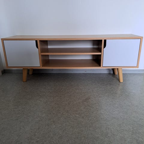 Joku isku/ Asko vanhempi TV taso. Laatikostot saa erikseen. Vaatisi pienen pintakäsittelyn, jotta olisi uuden veroinen.