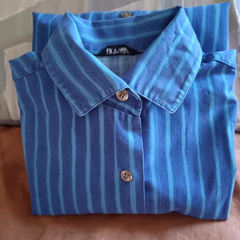 Myydään Marimekon Ilma Tasaraita -paita, 100 % puuvillaa. Väri sininen (vaalean- ja tummansiniset raidat). Venepääntie, vajaamittaiset hihat, koko M. Käytetty kunto, kissatalous.