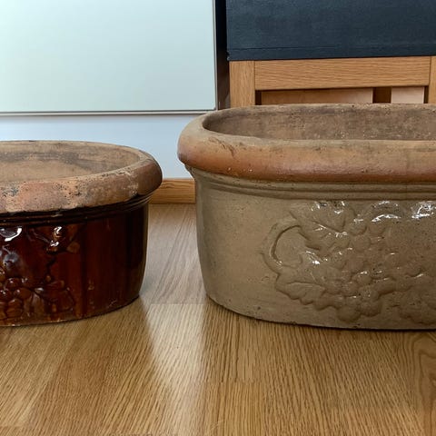 Iso Keraaminen ruukku lautasella vaalea
