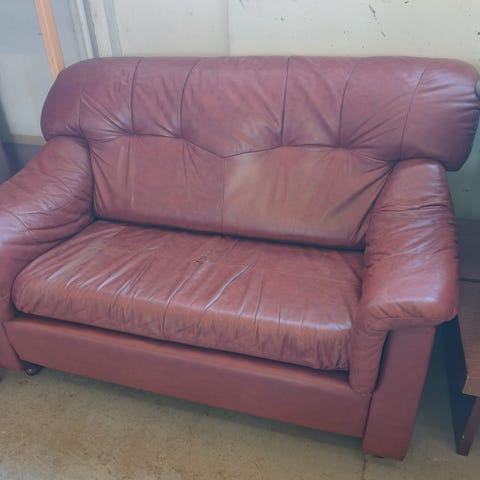 Keinonahkainen rahi. Käytön jälkeä/kulumaa, mutta ehjä.