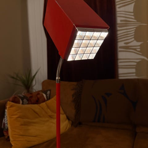 Toimiva lattiavalaisin, jossa vähän rispaumaa. Hinnasta voi neuvotella.