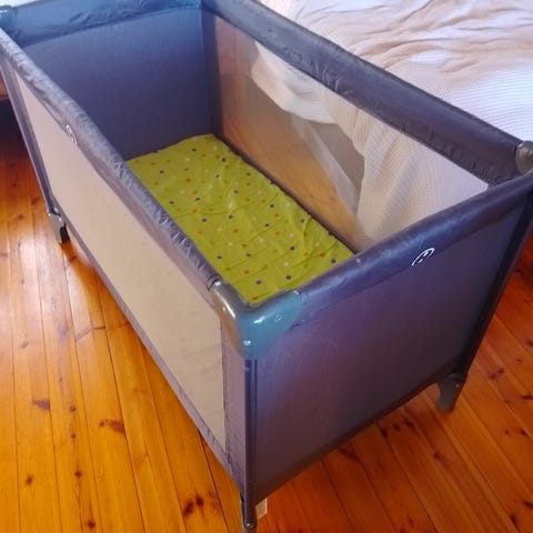 Sänky on siistissä kunnossa, satunnaisella käytöllä ollut. Tarrat pitävät hyvin. Ainoa moite on että säilytyslaukku päässyt hukkumaan.