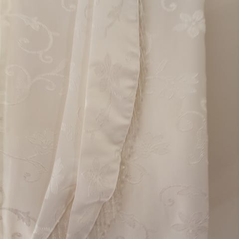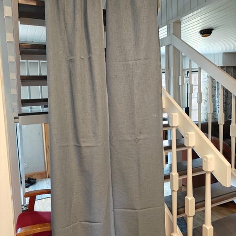 Myytävänä kotimaiset verhot; kappa ja sivuverhot pidikkeineen.