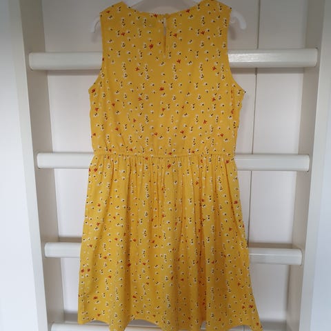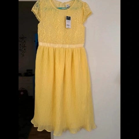 Kerran päällä käynyt kaunis vaaleankeltainen juhlamekko / kesämekko koossa 146cm. Nouto tai ostajalle postit.
