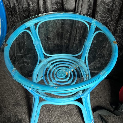Vintage sarjapöydän osa joka on odottanut kunnostajaansa. Projekti jäänyt meillä toteuttamatta, mutta ollut tällaisenaan käytössä sivupöytänä. Hieman notkuu. Tästä jollekin siis mainio projektiaihio edullisesti!