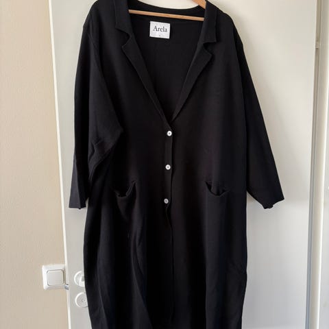 Sanna Hopiavuoren kimonomallinen neuletakki vajaamittaisilla hihoilla ja vyöllä. Sivussa taskut. Voi pitää ilman vyötä myös. 100% merinovillaa. Siisti kunto. Kokomerkintää ei ole, mutta menee S-L.