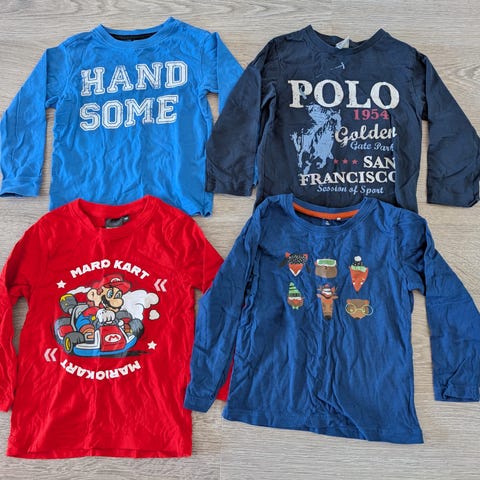 5 kpl pitkähihaisia paitoja 98/104 cm (Mario, dinosaurus ym.)