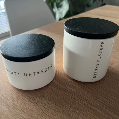 Karhulan keittiöpurkki ja 2 kpl uudempaa purkkia. Ei kansia. 21cm korkeita. Kaikki samankokoisia.