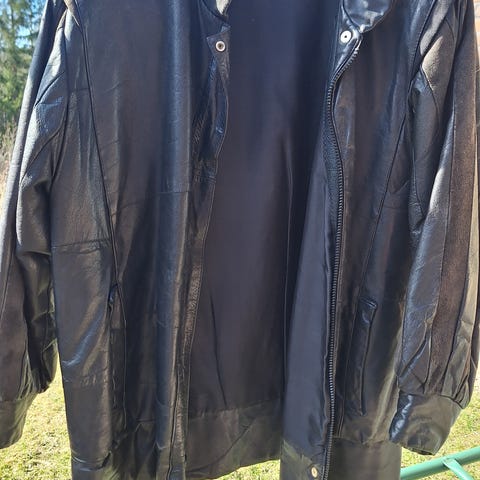 Miesten musta nahkatakki.