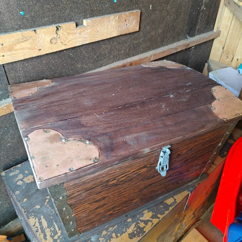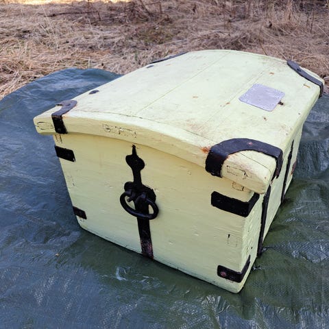 Pieni käsityönä tehty arkku, ns.korsutyö