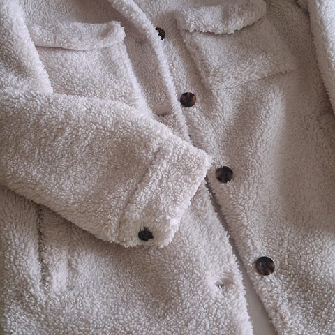 Veromodasta naisten takki kokoa XS. Takissa on kermanvaalea beige väri ja yhdistelmä fleeceä ja kevyesti topattua materiaalia,menee niin keväällä kuin syksylläkin.