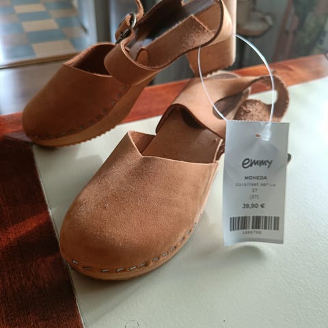 Kreikkalaiset, matalat nahkasandaalit. Konjakin ja kullan väristä pehmeää nahkaa. Koko 37, pohjan pituus n. 24 cm.