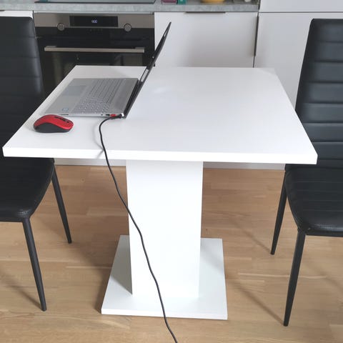 Myydään valkoinen IKEA DOCKSTA -ruokapöytä ja 2 valkoista tuolia. Tyylikäs ja ajaton ruokailuryhmä, joka sopii hyvin pieneen keittiöön, ruokailutilaan tai opiskelija-asuntoon.