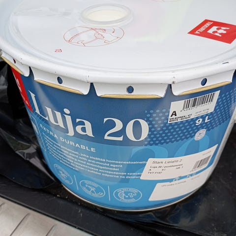 Uula Paneelimaali sisämaali sävyssä Hamppu. Vedettiin helmipaneelit portaikkoon ja ostettiin kaksi purkkia tätä maalia. On todella riittoisa maali, sillä toinen purkki jäi kokonaan avaamatta (vaikka maalattiin pariin kertaan). Ja jälki omasta mielestäni nättiä. Tarjolla siis se täysin käyttämätön purkki. Ostettu Tampereen Värisilmästä 9.12.25 (ks. tarra kuvassa).