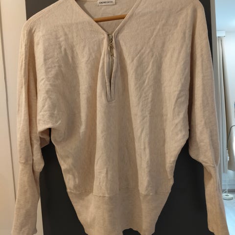 Odd Mollyn lämpimänsävyinen brige neulepusero naisille. Koko 1. Materiaali 100 % puuvillaa. Pitkähihainen malli, jossa röyhelömäinen pääntie ja nyörikiinnitys edessä. Nouto tai postitus.