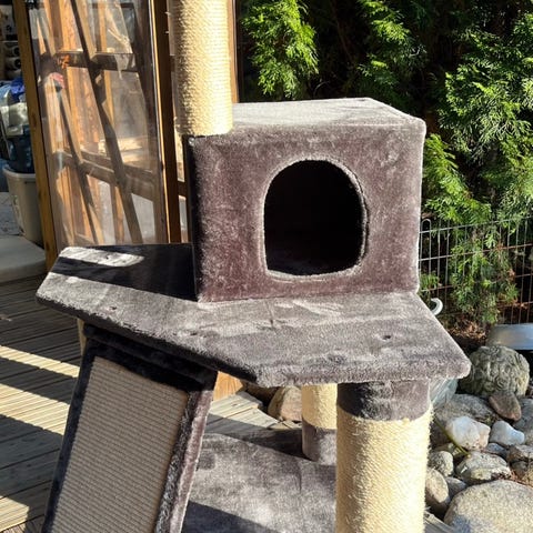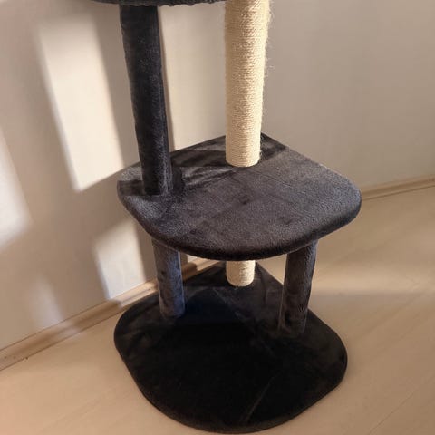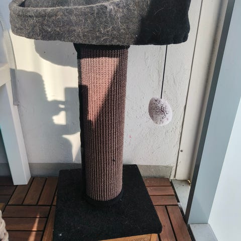 Kaksi kissan hyväkuntoista raapimapuuta. Molemmissa pystymallinen tolppa, joka on päällystetty juuttinarulla. Korkeudet noin 100cm ja 90 cm. Toisessa on neliönmuotoinen vaalea jalusta, toisessa puinen neliöpohja. Soveltuvat kissan kynsien teroittamiseen ja venyttelyyn sisätiloissa. Yhteensä 5 euroa.