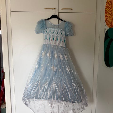 Vapuksi ihana Frozen-mekko? Edestä ommel rikki. Kangas paikoitellen nukkaantunut. Siksi annetaan :)