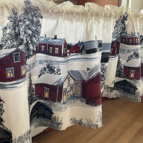 Uusi, paketissa oleva kesäinen Vallilan Hurmos- valoverhokappa.
