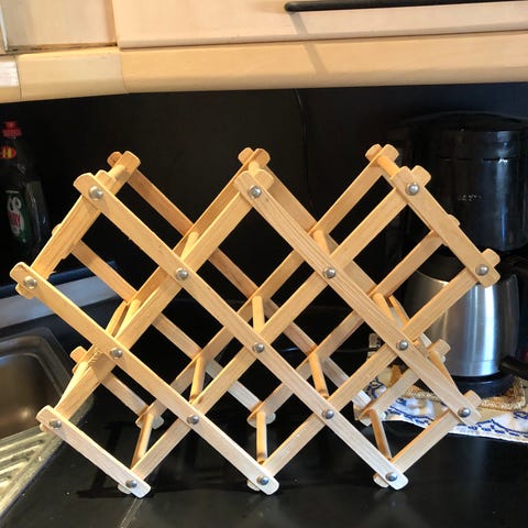 Patinoitunut viinipulloteline 12 pullolle. Mitat 35x40x29cm.