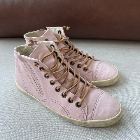 Vagabondin kengät koossa 37. Aran värin vuoksi tummentumaa paikoitellen ja kengän takaosassa keinonahka irtoilee, ks. viimeinen kuva. Muuten ehjät kengät.