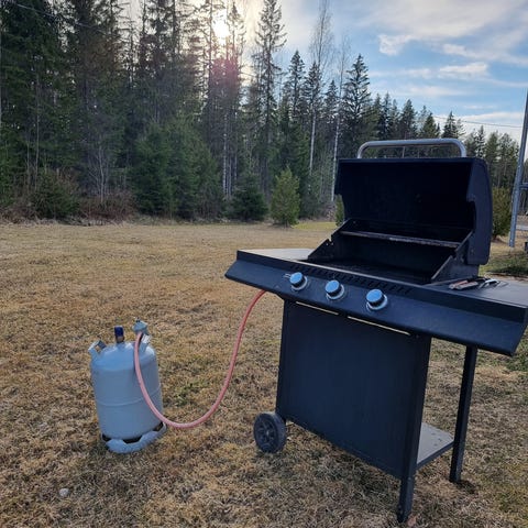 Kaasugrilli, jossa neljä poltinta ja etupaneelissa säätönupit. Grillissä on suuri kansi lämpömittarilla sekä sivutasot työskentelyä ja tarvikkeiden säilytystä varten. Paistopinta koostuu valurautaisista ritilöistä ja pariloista. Alakaapissa on tilaa kaasupullolle tai muille tarvikkeille. Runko on pääosin metallia ja ruostumatonta terästä. Sopii ulkokäyttöön pihalle tai terassille.Pientä pintaruostetta joka lähtee teräsharjalla.