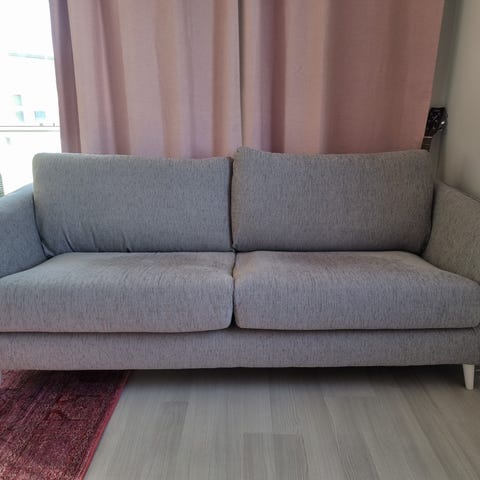 3-istuttava hyväkuntoinen ja siisti sohva. Kangas on laadukas ja kestää kulutusta. Sohvaan on laitettu myös suoja-aine.