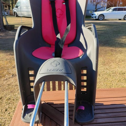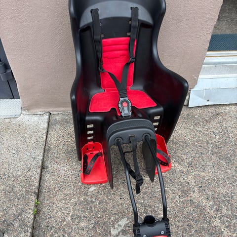 Käytetty lasten istuin. Mukaan 2 pyörään tulevaa kiinnike sarjaa