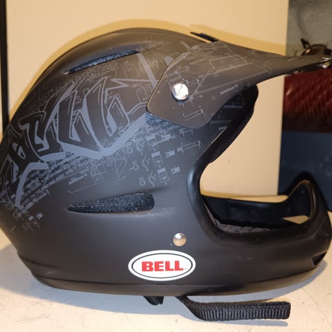 Bell Faction kypärä. Pinnassa joitain naarmuja, mutta muuten kunto hyvä. Mukana myös toinen setti pehmusteita, joilla kokoa saa säädettyä. Koko L (58-63cm)