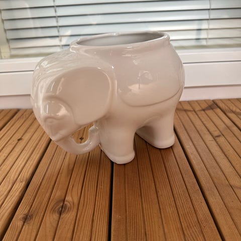 Myydään sisustuselefantti. Käy ihan vain koriste-esineeksi tai esimerkiksi kukkaruukun jalustaksi. 43 cm korkea ja 60 cm leveä.
