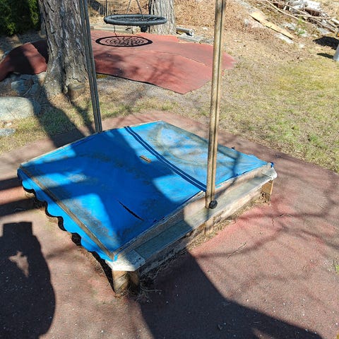 Annetaan kuvan mailat, kiekot, lapio ym. Vain nouto
