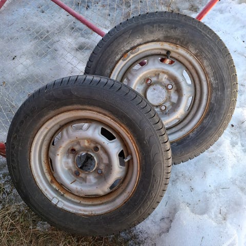 Jako on 4x114,3 tai 4x115 jossain peräkärryssä ollut. Rengas entinen. Vain nouto.