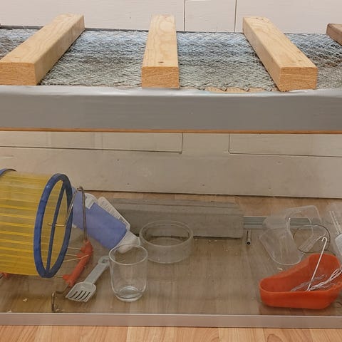 Ollut käytössä gerbiileillä, joten vesitiiviydestä ei ole tietoa. Toisella puolella kehyksissä teipin jälkiä, mutta toinen puoli siisti.