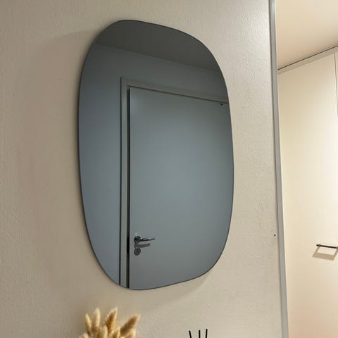 Se on yksinkertainen ja kaunis peili. Musta väri. Koko 91 × 42 cm. Nouto Parkkarilasta.