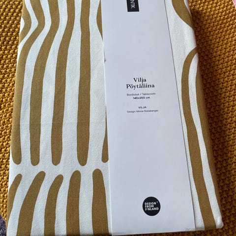 Uusi pentikin vilja kangas, puuvilla-pellavaa, musta-beige. Koko 3,35x1,5 metriä.