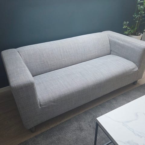 Ikea knopparp sohva, kangas hyvässä hapessa. Ollut ensin olohuoneessa, sitten lasitetulla parvekkeella ja nyt sängyn alla palasina. Taitaa olla noin 10 vuotias.