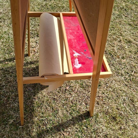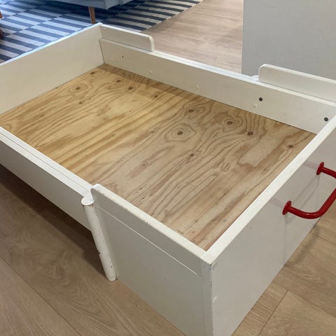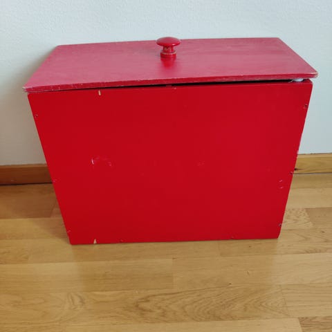 Punainen vedettävä laatikko renkailla esim. sängyn alle. Leluille, liinavaatteille jne.