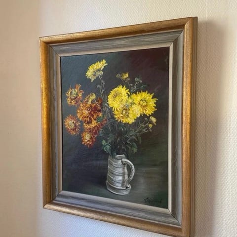 Kehystetty kukka-aiheinen taulu kullattu koristekehys