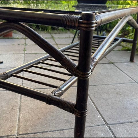 Vanha rottinki kukkapöytä sivupöytä rahi