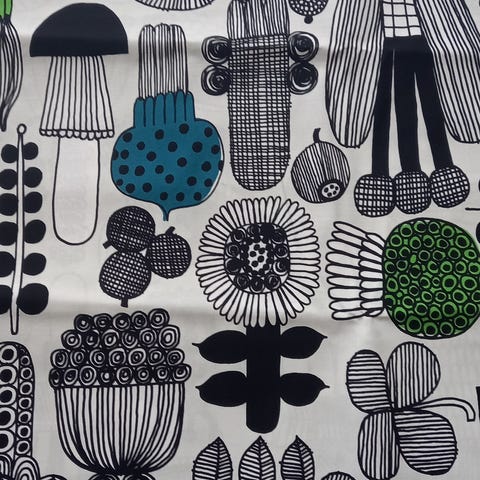 Myytävänä myös muita kankaita sekä Marimekon astioita.