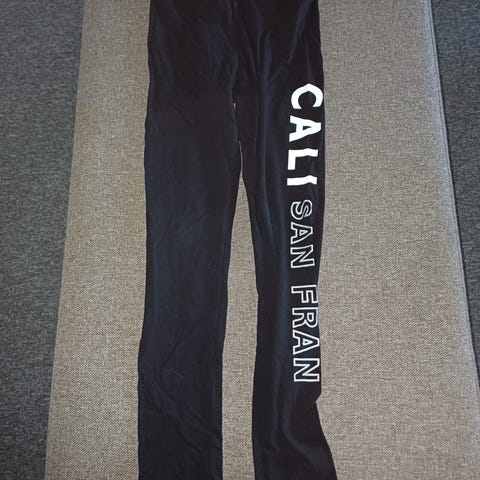 Lontoosta ostetut leggarit, siistit, pinkillä painatuksella, muuten tummanharmaat. Katsothan myös muita ilmoituksiani, niin samoilla kuluilla kulkee useampikin tuote!