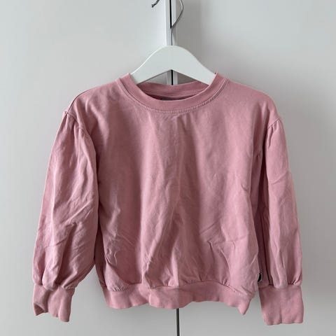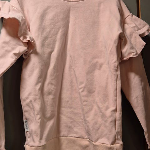 Gugguun persikka/vaaleanpunainen collegepaita koossa 140cm mutta on naftia ja vastaa paremmin 128/134cm.