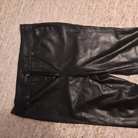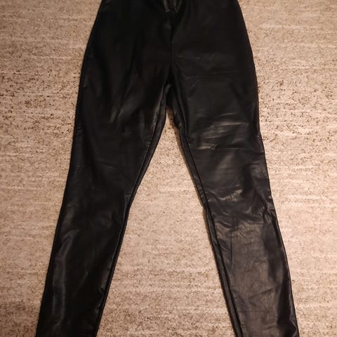 H&M leggingsit naisille, koko L. Väri musta ja materiaali tekonahkaa. Pitkälahkeiset, joustava vyötärö. Tekonahkapinta on sileä ja kiiltävä. Hyvin vähän pidetty, kuin uudet.