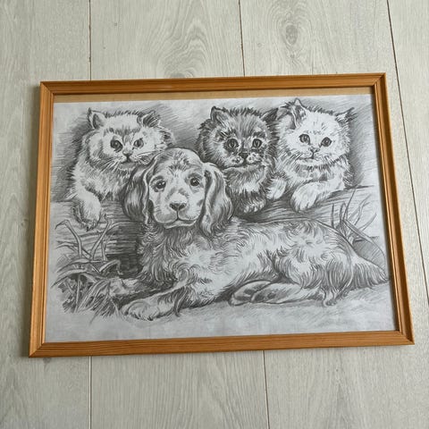 Ihana ja hyväkuntoinen eläinaiheinen juliste 50 x 70 cm, kehystetty mustiin kehyksiin (pleksi, ei lasia), sopii esimerkiksi lastenhuoneen tai leikkitilan seinäkoristeeksi.